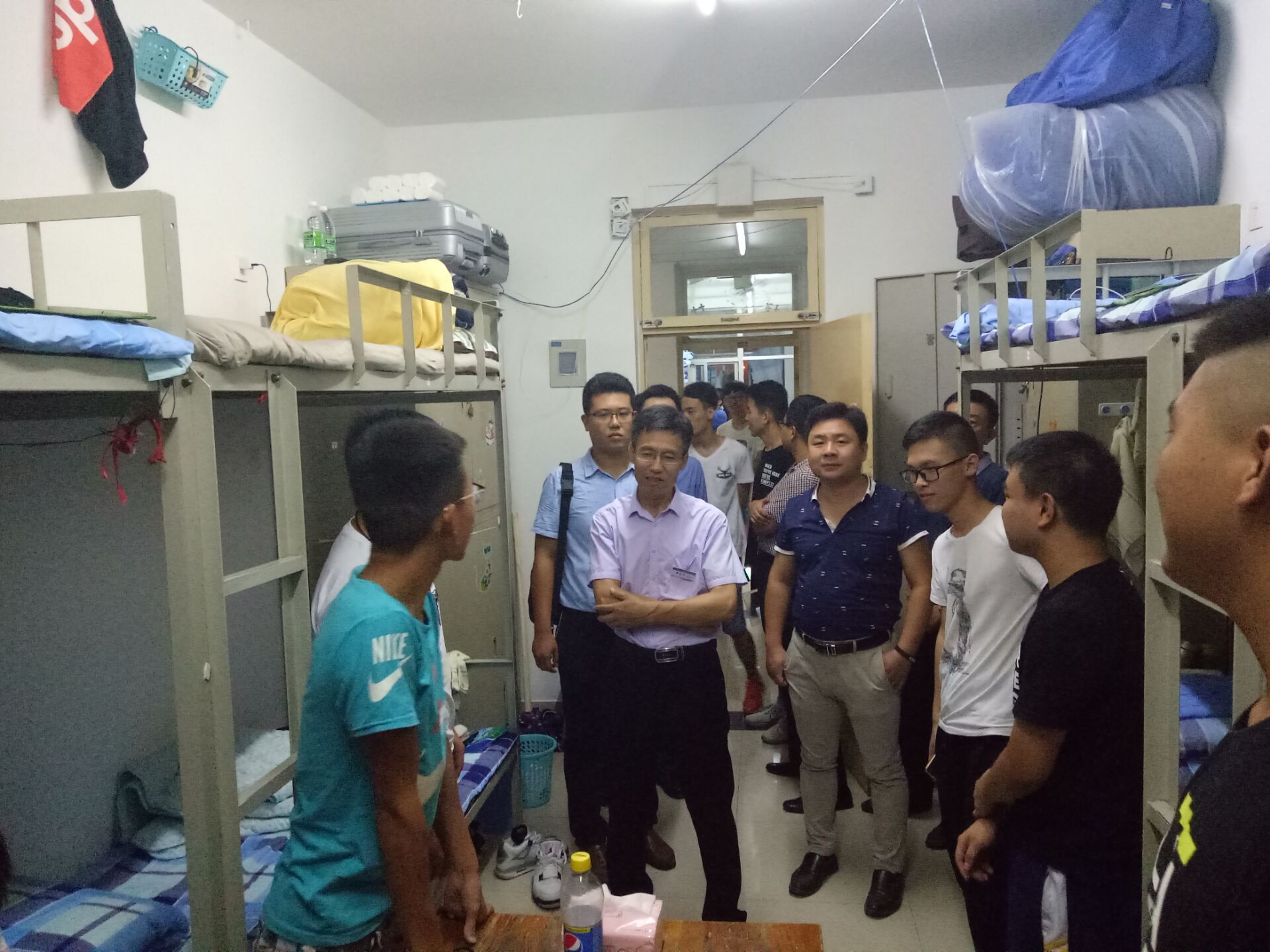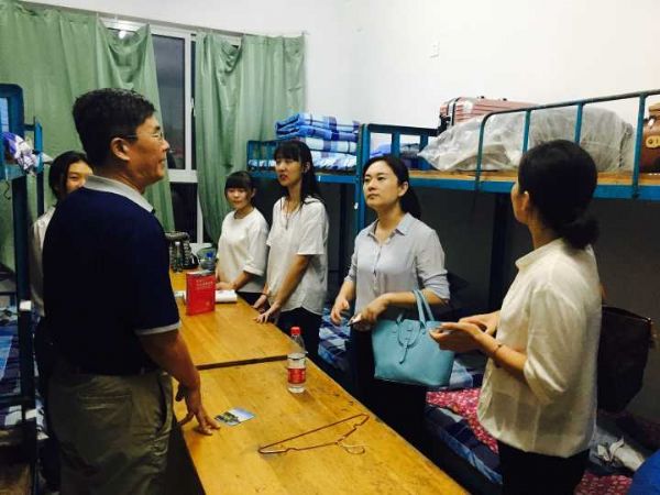 九月九日迎新当晚,学院党委郑爱华书记和王少清院长带领全体学生工作队伍、班主任老师和各班级配备的班级助理,分别到南苑和北苑新生宿舍走访探望2017级新生,展现了来自学院无微不至的关心。学院领导和老师们深入每一间新生宿舍和同学们亲切交流,询问新生同学来自哪里,对学校有什么第一印象,宿舍里还有哪些问题需要学院去协调解决。领导老师们平易近人的态度拉近了新生与学校的关系,化解了新生入校后的思乡情绪。郑爱华书记每到一间宿舍都要叮嘱同学们抓紧适应大学生活,同时注意安全问题,王少清院长则亲自帮助新生检查宿舍公共物品、修理门窗出现的小问题,学院领导的细致关心、身体力行令新生们感动于心。