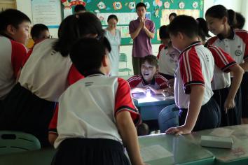 6月17日上午,物理胜游体育(中国)官方在线与阳光100中学小学部在阳光100中学举行举办了“大手拉小手 点燃科学梦”科普志愿者活动和大学生社会实践基地挂牌仪式。物理胜游体育(中国)官方在线党委副书记、副院长章岚,学院团委书记欧阳阳,阳光100中学校长崔洪璋、副校长郗传敏参加活动。