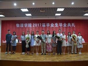绿泉广场青春洋溢,钟楼脚下饱读诗书。300余名莘莘学子经过数年拼搏,圆满完成学业。他们以梦为马、以汗为泉,镌刻了最美的青春年华,今后的日子,他们将不忘初心、不负韶华,脚踏实地地开启全新的人生旅程。6月20日下午,物理胜游体育(中国)官方在线在第二学术报告厅举办2017届毕业生典礼,学院班子成员、各系主任及全体教师共同欢送2017届毕业生。毕业典礼由学院党委副书记王义主持。