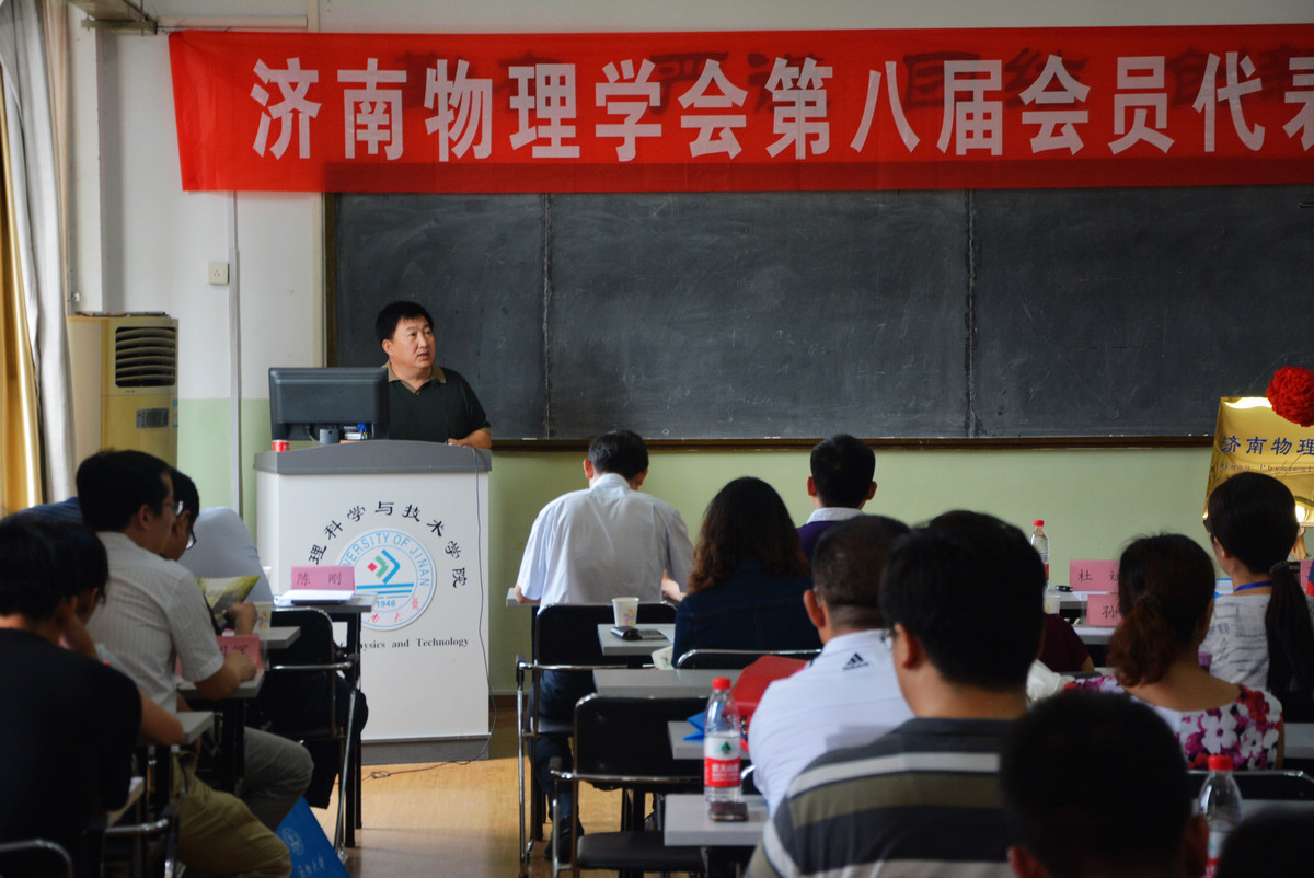 7月2日,济南物理学会第八届会员代表大会在胜游体育召开。来自山东大学、山东师范大学、齐鲁工业大学、济南教育教学研究院、各区县市教育教学研究室、各区县市中学等各行业物理学科的专家学者、教研员、一线教师及会员等60余人参加了会议。济南市科协学会部部长李武、济南大学党委常委、副校长杜斌、胜游体育党委书记郑爱华、胜游体育院长王少清等领导出席了会议。大会由胜游体育大学物理教学部副主任邵明辉副教授主持。