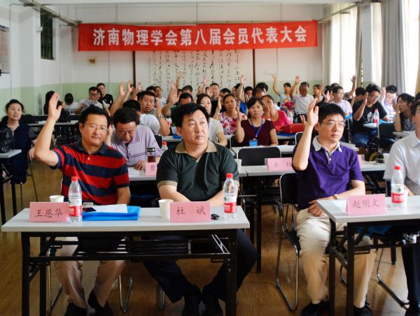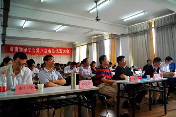首先,杜斌副校长致欢迎词。杜副校长对参会的专家、老师们表示了欢迎,并将济南大学近几年的发展情况作了简要介绍,强调了学校对学会的大力支持和学会发展对学科建设的重要性。大会由济南市科协学会部部长李武宣读了学会换届的批复,然后大会对济南物理学会第七届理事会工作报告、章程、选举办法等内容进行了表决通过。大会选举了济南物理学会新一届理事会成员、理事长、副理事长、秘书长等负责人。