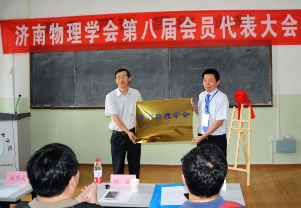 大会选举济南大学“泰山学者”海外特聘专家陈刚教授为理事长。随后,新任理事长作了大会发言。他在发言中对济南市科协、济南大学物理学院提供的支持表示了感谢,提出了发挥学会、推动济南物理学教育、物理学探索及科技创新发展,助力济南市人才和经济建设发展等三个目标。