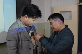 一名党员就是一面旗帜。佩戴党徽仪式是此次主题教育活动的重要内容,会上,学院党委书记郑爱华、党委副书记王义,为各支部党员代表佩戴党徽。党徽戴起来,身份亮起来,一枚党徽带在胸前,时刻提醒我们牢记党员身份,争当标杆模范,始终不渝地坚守“为人民服务”的初心诺言。会后,各党支部会分别针对这一主题开展主题党日活动,支部书记为每位党员佩戴党徽,在庄重的仪式中进一步强化党员意识。