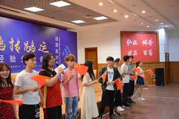 在随后的人物访谈环节,七位嘉宾与主持人和现场考研同学进行充分的交流。“只要坚持学渣也能逆袭为学霸”“通过夏令营了解别人在做什么”“找一个正能量研友相互扶持”以及考研全部录取的学霸宿舍是怎样炼成的,一系列小秘籍让同学们收获很多。此外,会场还展示学长学姐的寄语,把情真意切的考研感悟传递给大家。最后,在快闪《我相信》的激昂旋律中,学子们踏着催人奋进的节拍,挥动着手中的小旗,正式向着星辰大海进发。