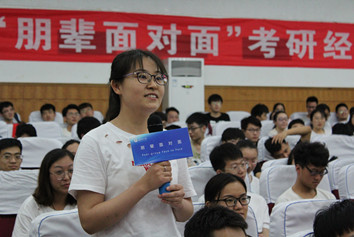 面对考研过程中的迷茫困惑,师长学长齐上阵指点沙场。干了十多年班主任、考研指导经验丰富的张仲老师,从鲜活的案例入手,详细讲解院校如何选择,专业如何选择,学硕与专硕如何选择,合理确定考研目标方向后,关键在于付出努力的多少。宋健奖学金获得者、推免至华中科技大学攻读硕士、即将转博的2017届毕业生赵方分享她的读研经历,嘱咐学弟学妹要有读研报国的情怀、破釜沉舟的勇气,通过考研赢得未来广阔之路。高分考生杨莹、李佳明两位同学分享了自己的高分秘籍。以一分之差与一类地区擦肩而过的刘磊,分享了如何辗转广西、云南多所高校,最终以笃定的信念调剂成功上岸的经历。
