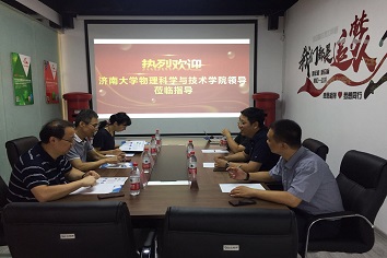 9月10日上午,物理胜游体育(中国)官方在线党委书记郑爱华,学院党委副书记盖丽那,学院副院长张海鹍,学院教师付飞飞老师等一行前往济南国际文创产业街区开展工作座谈交流。园区三位创办人吕铮、梁振兴及姚鑫参加座谈。