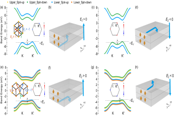 层霍尔效应是由贝里曲率和层自由度耦合产生,对基础物理和器件应用都具有重要意义。目前,层霍尔效应的研究局限于拓扑系统反演对称谷电子体系,这限制了其进一步的研究应用。张等人通过模型分析,提出了一种从反演对称单层晶格实现层霍尔效应的通用设计原则。通过紧束缚模型分析,证明了通过反铁磁范德华双层晶格的叠加,可以实现PT对称与外加垂直电场之间的耦合效应该耦合揭示了先前隐藏的层锁Berry曲率,导致载流子能够在给定层内沿特定方向移动,从而实现了层霍尔效应。有趣的是,层霍尔效应的手性可以通过调节垂直电场的方向有效地调控通过第一性原理计算进一步在双层T-FeCl2和MnPSe3中验证了这一机制的可行性。这一研究成果在层霍尔效应的设计中具有重要意义