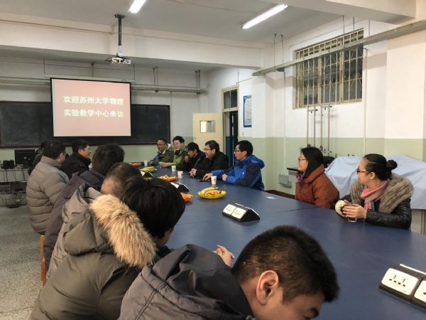 为了考察学习我校大学物理实验超市教学模式的改革经验,1月10日苏州大学物理实验教学中心副主任江美福一行五人,1月19日江苏大学物理实验中心主任王国余一行四人相继来访。物理胜游体育(中国)官方在线院长王少清、书记郑爱华以及大学物理教学部全体教师参加了会见。