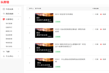 在线上课程的准备阶段,张老师发现当前常用的课程辅助平台承担了全国大部分高校的线上教学任务,导致频繁崩溃。因此,张老师选择了服务器更加稳定的“今日头条”APP做为线上课程网站。张老师过去一直以来都在“今日头条”上做科普视频节目,对相关的规则与功能都比较熟悉。“今日头条”推出的专栏功能是一个内容变现工具,而且专栏也能支持视频、文档和音频节目的展示,因此张老师就在“今日头条”上开设了一个《自动控制理论基础》专栏。