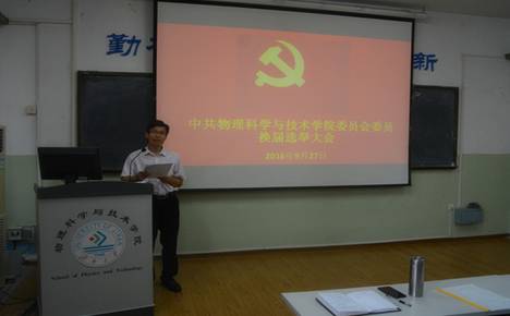 2016年9月27日下午,物理胜游体育(中国)官方在线党委在学院会议室召开了委员换届选举大会,会议由陈刚副院长主持,学院党委上届委员、全体教工中国共产党员和学生中国共产党员共计86人出席了会议。
