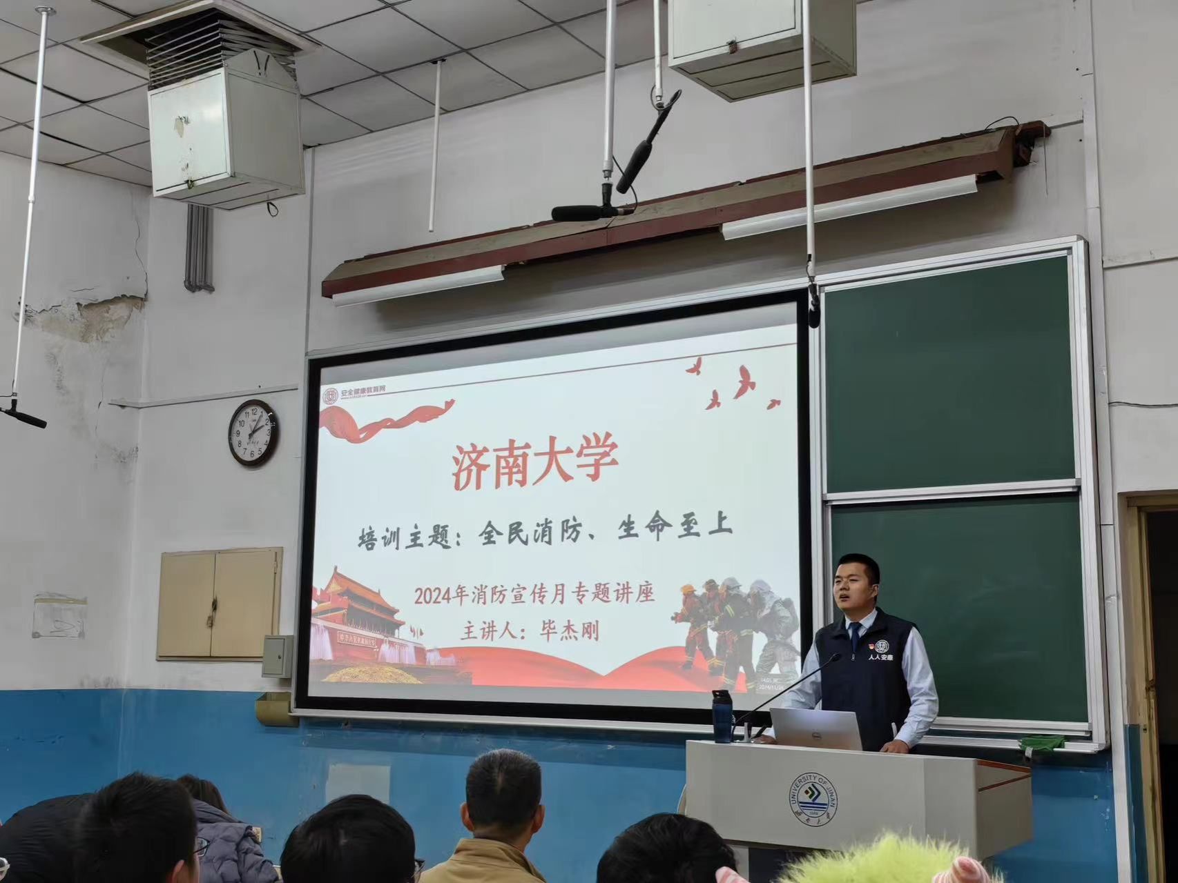11月26日,为提升学院师生消防安全意识,强化实验室消防安全责任,物理胜游体育(中国)官方在线与土木建筑学院在梅花馆联合举办了“济南大学实验室消防安全应急演练”,安全管理处副处长陈营明、实验室与资产管理处副处长刘庆红,以及两个学院的师生100余人参加了应急演练,活动由物理胜游体育(中国)官方在线院长助理宋朋主持。