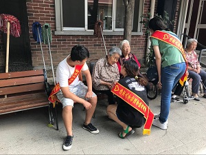 在这骄阳似火的夏日,志愿者们在谭鑫溢学姐的带领下精神饱满得来到幸福家园。大家各自分工,有的同学看望卧床不起的老人和他们聊天,陪在旁边,还有的帮老人打扫卫生,除草浇花;还去帮忙厨房干活,减轻工作人员的工作,干完了活,放下手中的工作,在阳光下和老人畅聊,缓解他们在院的孤独感。欢声笑语弥漫在公寓的角角落落,使安静的公寓变得活泼,有了生机,有了欢笑。在同长辈们的相处之中,志愿者们感受到了老人对亲情的渴望以及他们的和蔼,临近活动尾声,志愿者们与老人一一告别,愉快的结束了一天的志愿活动。