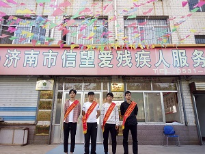一大早,志愿者们在规定地点集合,在领队的带领下前往信望爱残疾人康复中心。到达地点后,经过与工作人员的协商,志愿者们开始了本次活动。志愿者在工作人员的指导下学会了简单的康复训练技巧,协助工作人员为这些孩子们进行户外康复训练,带领他们去户外,让他们感受自然,亲近自然,有助于他们的康复,在互动中观察他们的喜好,营造了一种温馨充满爱的环境氛围。