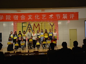 活动初始,通过对宿舍图案、宿舍雅名、宿舍铭的征集,鼓励同学们积极参与本次宿舍文化节活动。活动期间,同学们认真参与宿舍主题、宿舍图案、图案寓意的设计,并通过装饰墙壁、悬挂书画作品或照片等方式完成宿舍的主题设计。本次活动评比通过ppt形式将宿舍LOGO个性设计、宿舍座右铭设计、宿舍装饰比拼等展现出来,让学生尽情的展现自我,释放自我,把对生活的向往融入现实的设计,为宿舍文化节留下一份美好的记忆。这些成果都体现了同学们对自己生活的寝室的热爱和对生活的激情。同时参与评比的宿舍进行了歌曲、朗诵、舞蹈等形式的文艺表演。通过丰富多彩、独具创意的形式展示了我院学生宿舍的良好风貌,营造了高水平、高质量的宿舍文化氛围。活动期间老师为上学期星级宿舍颁奖,鼓励优秀宿舍也激励其他宿舍继续努力,力求做到最好。