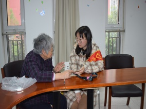 志愿者们在那里和老人们聊天,他们的话语从以前的历史穿过,来到现在的科技时代,陈旧的历史话题给老人们带去了回忆感,倾听了他们“曾经的故事”,志愿者们也增加了对过去老时代的好奇感;志愿者为他们讲了现在所属的科技时代,老人们的脸上浮现的是向往、惋惜、自豪,惋惜的是他们已经不能跟上这个时代,自豪的是我们的国家日益强大。