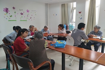 当天上午十时许全队成员抵达敬老院,一走进敬老院大门,便看到老人已经院子里坐好,欢迎我们的志愿者们。细心的同学不但自发的购买了水果和蛋糕等慰问品,还准备了文艺节目送给老人。在整个活动期间,志愿者们通过陪老人下棋,教老人使用手机,和老人们一起做手工,还有陪他们聊天等途径使敬老院顿时萦绕着欢声笑语。