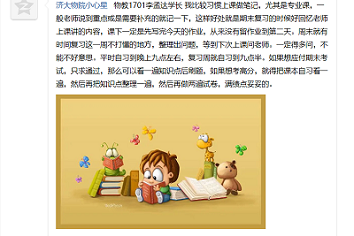因为还未消除疫情的威胁,学生们无法回到自己熟悉的校园,无法与自己的好友如期在校园相见,但这并不能影响我们的学习。网课也就成为了当下学习的主要方法,可在网课中,老师与学生毕竟隔着一块屏幕,老师无法感受到学生是否认真在上课,也无法与学生进行及时的交流,所以学生的学习效率肯定比不上在学校的时候。此次“一个人的自习室”线上活动就通过交流群内每天打卡的方式监督着学生每天的学习,并有优秀的学长学姐分享自己的学习经验。在活动中,学生们在群里积极交流,分享自己的学习经历,主动向学长学姐请教学习方法,与同学们交换学习笔记。