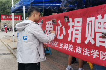 参加本次活动的志愿者在詹洪同学的带领下,按时抵达指定地点,拉开了本次志愿捐赠活动帷幕。志愿者们齐心协力,支起帐篷,摆上物品,拉上捐赠的横幅标题,用真心坚守岗位,用热情迎接每一位来捐赠的学生。志愿者们呼吁大家将军训完后的军训服捐赠,将衣物捐赠给更需要帮助的人。赠人玫瑰,手有余香,每一份捐赠,汇聚成千万爱心,温情传递向更广袤的远方。捐赠的学生越来越多,收集的爱心也越来越多,这些捐赠的军训服凝聚着济大物院学子的真情,同时也汇聚了同学们在经历军训磨练后的坚毅意志。志愿者们将爱心小卡片送给每一位捐赠的同学。这些承载着爱心的军训服将捐赠给需要的农民工子弟,将温暖献给有需要的人。活动结束后,志愿者们清点今天收集的衣物,将衣服打包好。满载着爱心的衣物,让志愿者们看到了一份份爱心的凝聚,也让同学们体会到爱心捐赠的真正意义。
