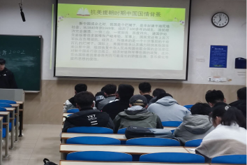 直播前,团员代表们准时到达观看地点,会议室中的大家保持着安静。直播讲述的是70年前的一场惊心动魄的战争。战争中,鸭绿江彼岸的三千里江山,夜与昼被炮火一次次撕裂,20多个国家直接或间接卷入战争,双方300多万士兵经过两年零九个月的浴血搏杀,霸权主义者黯然离场,正义的旗帜重新在北纬38度线上高高升起,和平的阳光才真正普照古老的东方大地。如果说,西方军事史学家称公元前5世纪的马拉松之战是“欧洲出生时的啼声”,那么发生在20世纪中叶的抗美援朝战争,则是新中国诞生后的第一声呐喊。
