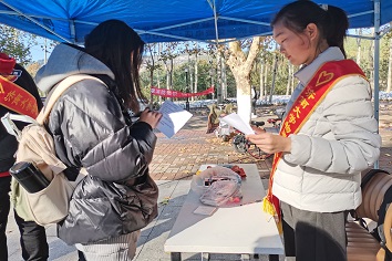 志愿者们清晨在第八食堂广场集合,积极的进行准备工作,布置帐篷、拉起横幅,六名志愿者负责抽奖竞答与发放礼品,其他志愿者向经过的学生进行消防知识的宣传。 现场吸引到许多同学参加活动,同学们在问题箱内抽取与消防安全知识有关的问题,每人抽取5个题目进行回答。在答题的过程中,同学们懂得了火灾的危险性,增强了消防意识;了解了火灾形成的原理;同学们表示要时刻牢记消防知识,消除火灾隐患,防微杜渐。活动结束后,志愿者们将场地收拾整洁并将借的物品送还原处。
