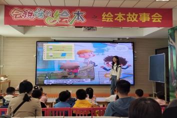 活动开始前,在志愿者们的带领下小朋友与其家长一起跳了亲子舞,活跃现场氛围。活动开始进行,志愿者们根据小朋友好奇、喜欢探索的心理,结合开发阅读兴趣的需求选择绘本,以游戏、趣味活动等方式帮助孩子了解自然科普、自我认知、行为习惯培养等方面的内容。一位志愿者讲了《小老鼠大鲸鱼》,一个胜游体育友情的故事,充满魔力又发人深思。两位主人公一个庞然大物,一个微乎其微。他们在一起时,互帮互助,彼此欣赏,尽管知道可能永远不会再见面,但也知道永远不会忘记彼此。深厚而单纯的感情,可以让孩子们理解到,真正的爱可以超越时间和空间。志愿者们用生动有趣的语言和肢体动作,声情并茂地把绘本故事活灵活现地展现给大家,每一位孩子和家长都身临其境。