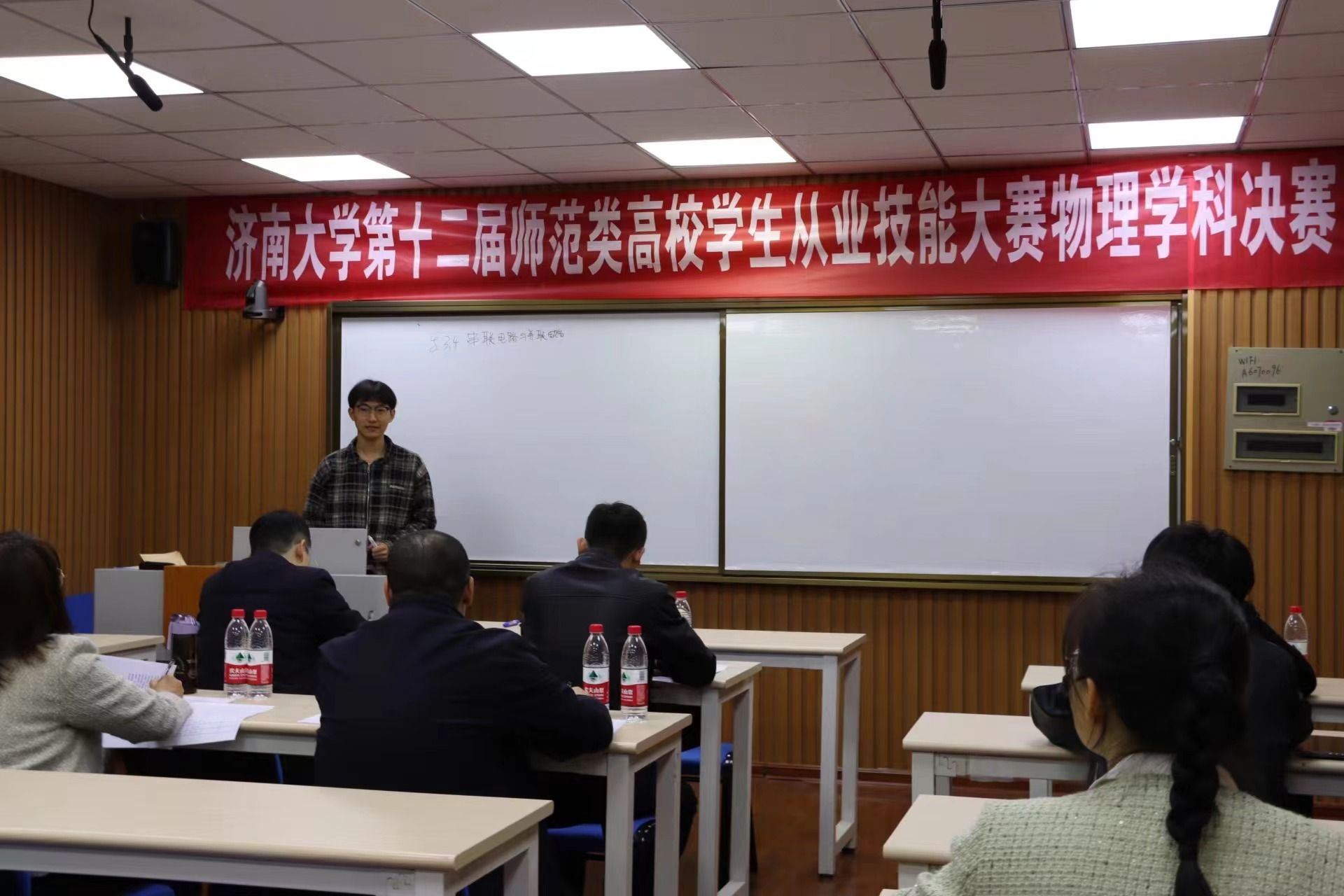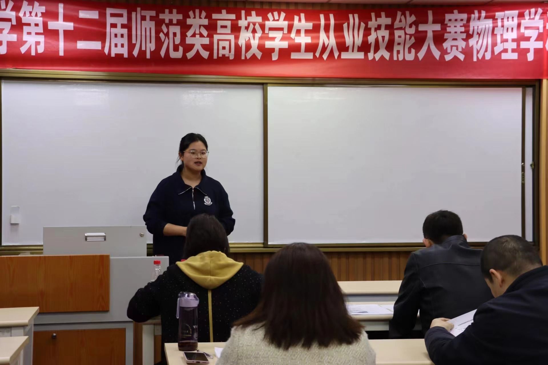 为强化师范生从教基本技能教学与训练,提升师范生的教学技能、实践能力和综合素质,推进教师教育持续健康发展,4月2日,由物理胜游体育(中国)官方在线承办的第十二届师范类高校学生从业技能大赛(物理学科)校级决赛在七教A607举行。