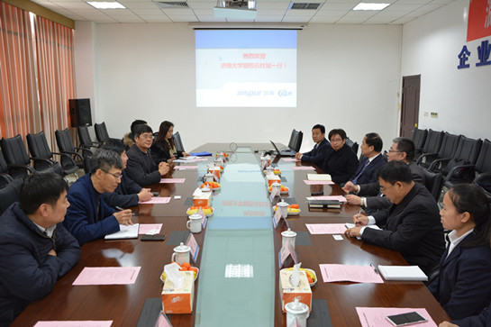 2018年1月23日,济南大学常委、副校长杜斌,研究生院副院长张志全,学院党委书记郑爱华,院长王少清,副书记王义及学院学生工作办公室负责老师一行赴潍坊与浪潮华光集团洽谈合作,签订就业实习基地合约。